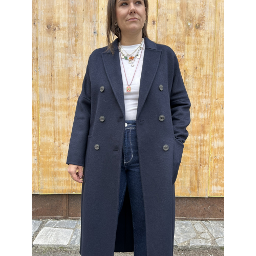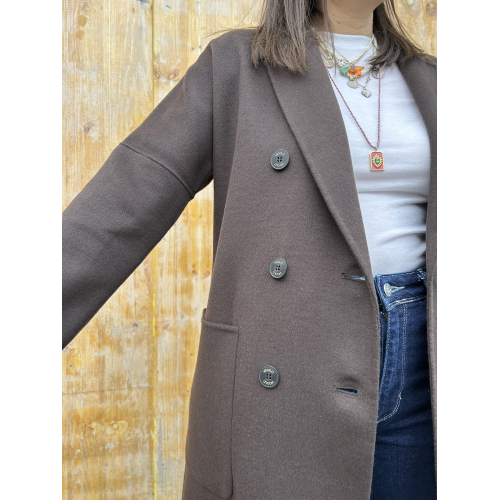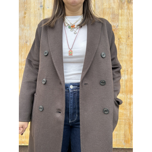 Cappotto doppio petto Vicolo TF0001.Capootto modello dritto con allacciatura doppio petto, disponibile in color cioccolato o blu.