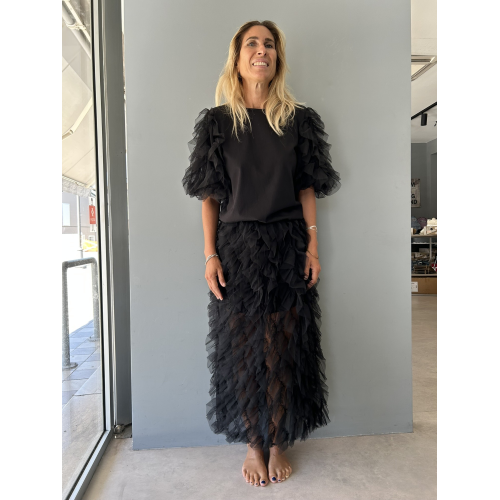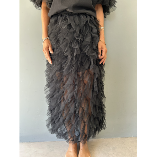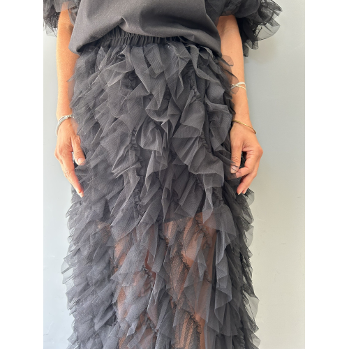 Gonna con rouches in tulle Philia Loft.Elastico in vita, modello dritto con sottogonna.